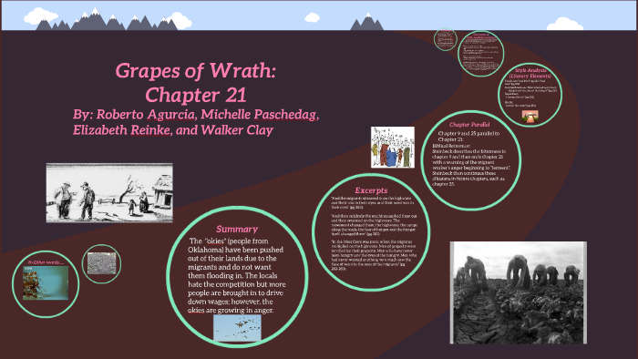 Take a quiz about the important details and events in Chapters 19-21 of The Grapes of Wrath. An analysis on chapter 21. Poet laureate Juan Felipe Herreras Exiles and John Steinbecks Chapter 21 from.